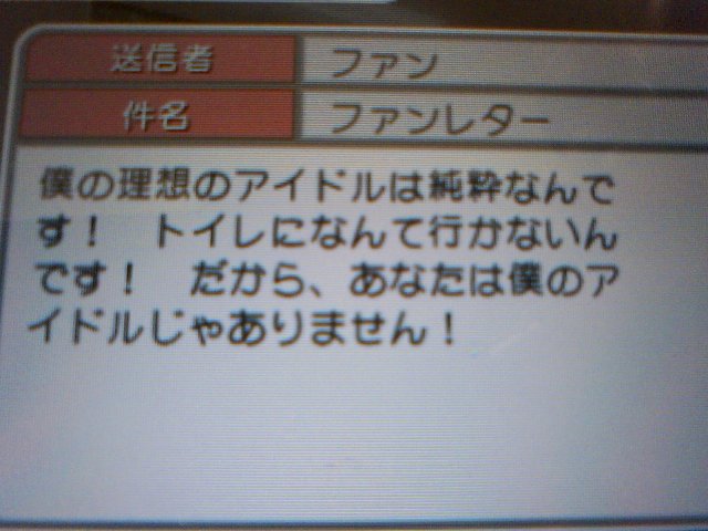 しかし恐ろしい地雷だ。ファンレターを開けたくなくなる気持ちがわかるよ